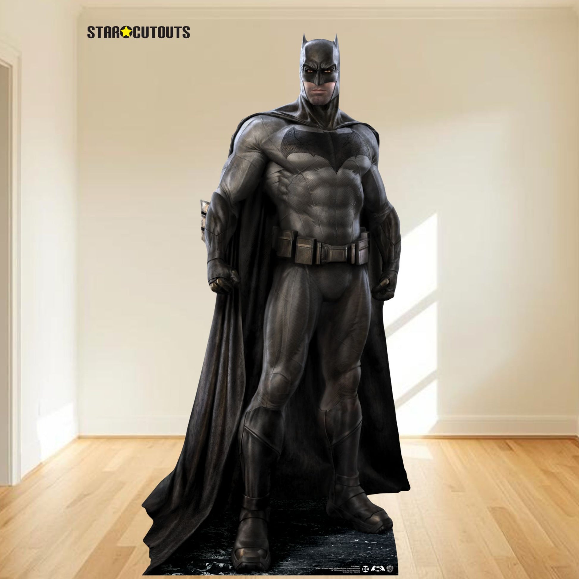 Get ready to bring the Dark Knight to your home with this larger-than-life Batman cardboard cutout featuring Ben Affleck's iconic portrayal.