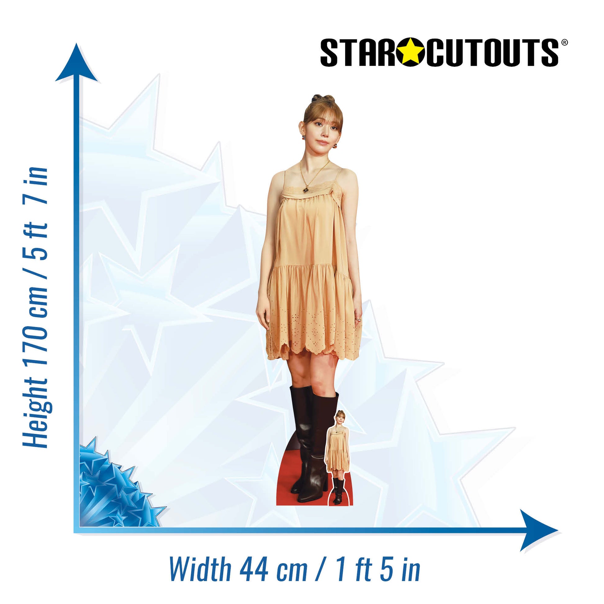 Celebrate the dazzling presence of Sakura Miyawaki, the beloved member of LE SSERAFIM and former IZ*ONE and HKT48 star, with this gorgeous lifesize cardboard cutout.