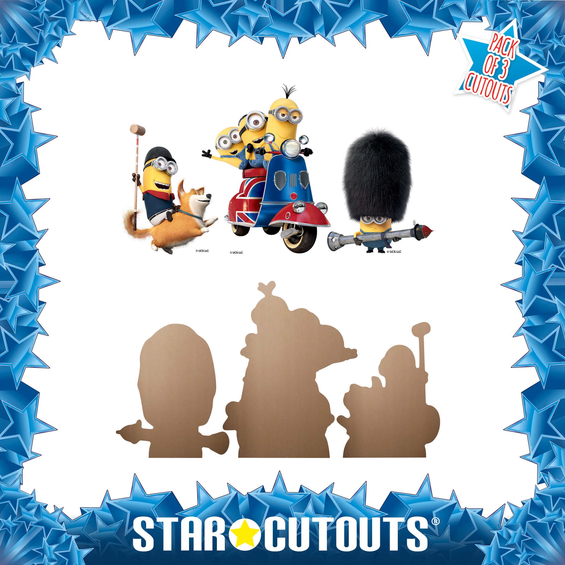 Minions British Invasion Three Small Cardboard Cutouts Shelf Top Pack – Height 28cm 🇬🇧🍌